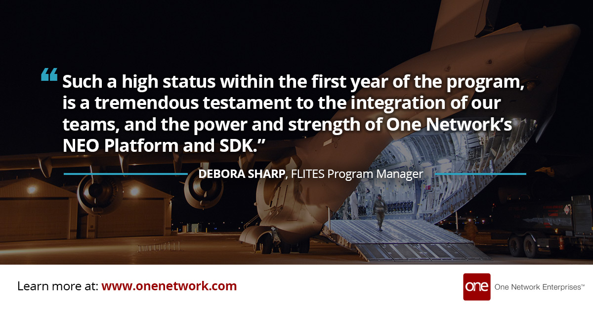 Using the One Network NEO Platform with Community Master Data Management capability, FLITES will establish a full Item Master Catalog and Parts Provisioning capability across the Air Force. This will replace the existing Item Management Control System with a modern multi-party network platform that will never go legacy. Unlike contractor-driven programs, the FLITES Integrated Program Office (IPO) is a government-driven System Integrator that leads and manages the development and integration of the Digital Supply Chain Network™ into the USAF Logistics IT environment, utilizing ONE’s backward-compatible Developer Network Software Development Kit (SDK) and associated professional and consulting services.
