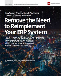 As SAP pushes its customer base to move to S/4HANA, global enterprises face a choice. Slog through yet another costly ERP migration with an uncertain outcome and an open timeline? Or ramp up quickly with an operational system-of-record and proven technology designed from the ground up for multiparty business networks? You know the answer already, and in this position paper One Network Enterprises explains why it’s the correct one. Supply chain network platforms provide significant value and remove the need to reimplement your ERP system! Here’s how.
